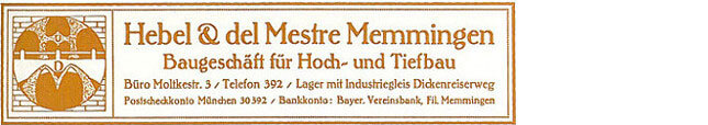Gründung der Hebel und del Mestre OHG im Gesellschaftsregister beim Amtsgericht Memmingen. Tätigkeitsschwerpunkt ist der preisgünstige Wohnungsbau nach eigenen Entwürfen.