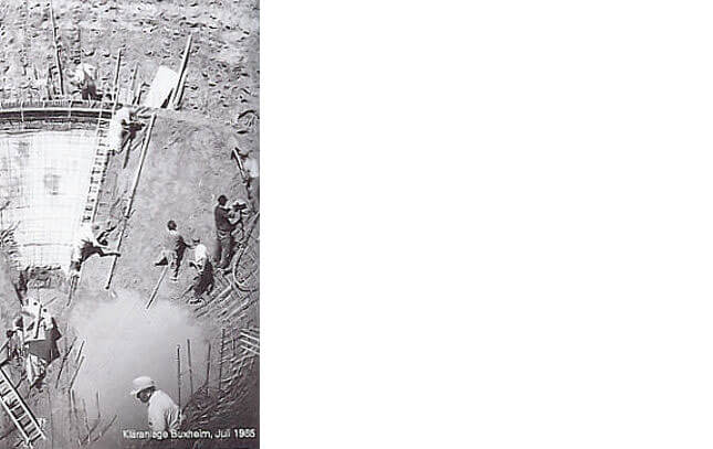 Bau unseres ersten Fernmeldeturmes mit über 100 m Höhe in Willstädt (Kehl am Rhein). Arbeiten an der Kanzel des Fernmeldeturmes. 1986 Gründung der Abteilung Bauwerkserhaltung 1991 Fernemeldeturm Bernbeuren Rundschalung im Vergleich – in den 20er Jahre und 1990 Rundschalung innerhalb eines Spundwandkastens Mitte der 20er Jahre. Eine ähnliche Aufgabe, aber 65 Jahre später: Fundament und Schaft des Fernmeldetrums Bernbeuren 1990. Beginn unserer