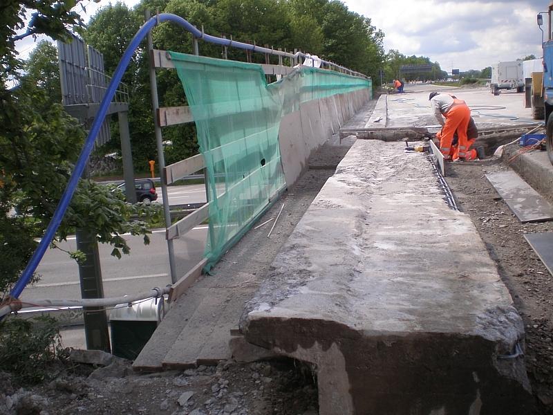 Erneuerung der Gehwegkappen, Erneuerung der Abdichtung, neuer Fahrbahnbelag, neue Schutzeinrichtung, Spritzbetonschale an Widerlagerwänden