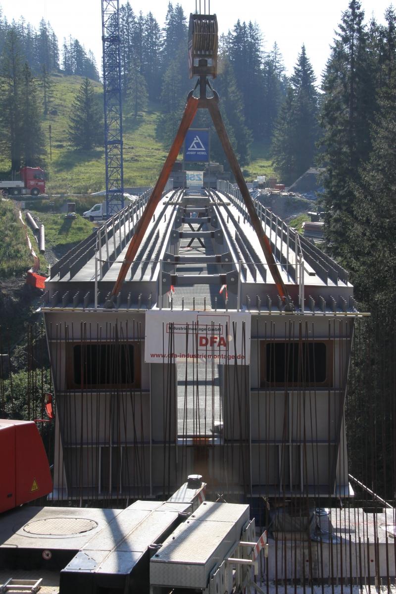 Die besondere Lage der Baustelle mit 1400 m ü NN, am höchsten Punkt der höchstgelegenen befahrbaren Passstraße Deutschlands, stellt eine Herausforderung für die Belieferung der Baustelle dar. Aufgrund der Geologie ist das gesamte Bauwerk auf Bohrpfähle, welche bis in den Felshorizont einbinden, gegründet. Der Einbau des Stahltragwerks für den Überbau von einer Seite aus im Taktschiebeverfahren ist der technische Höhepunkt.