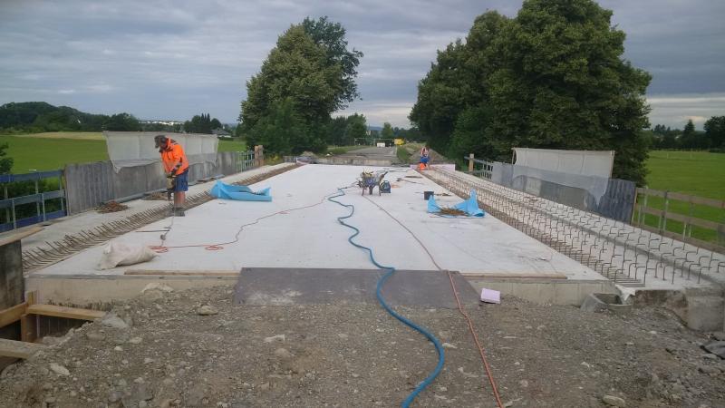 Das synchrone Ausführen der umfangreichen Instandsetzungsarbeiten auf und unter dem Brückenbauwerk waren eine herausfordernde Aufgabe. Die durch das extrem hohe Verkehrsaufkommen auf der B30, in Verbindung mit den spärlichen Platzverhältnissen unter dem Brückenbauwerk ein hohes Maß an Flexibilität und Aufmerksamkeit erforderlich gemacht hat.