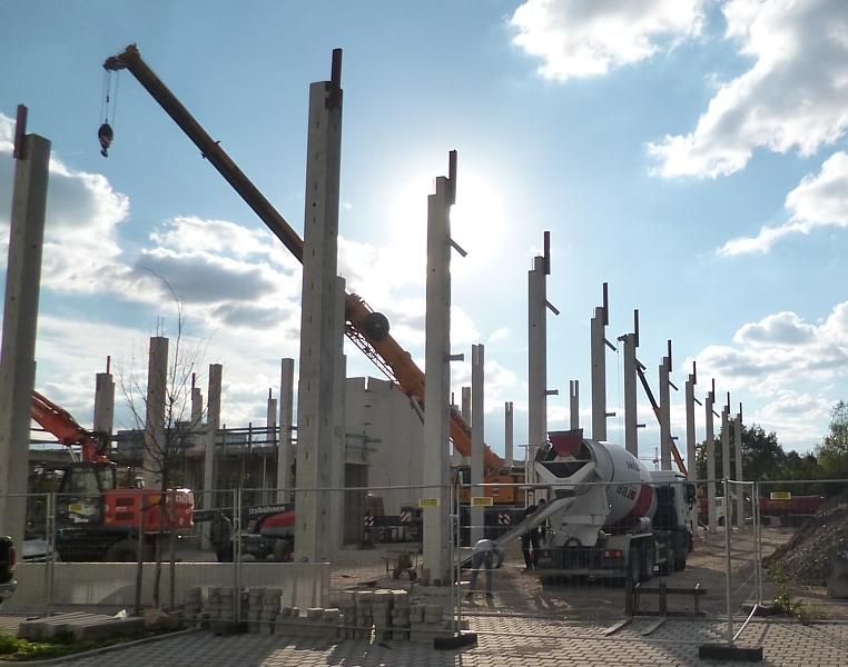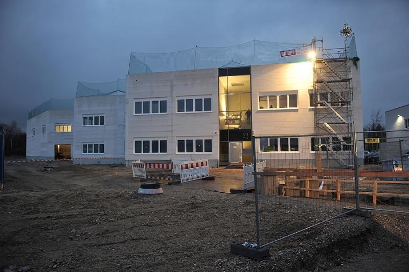 2500 m² Gewerbehallen, Sozialbereichen und Büros, Fassade aus Porenbeton, 2500 m² Freianlagen