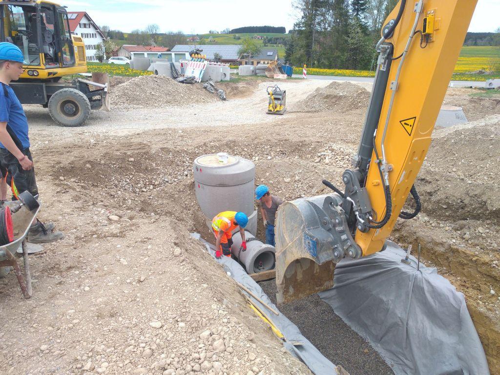 - 250 m Regenwasserkanal - 250 m Schmutzwasserkanal - 500 m Wasserleitung - Ca. 8000 m³ Aushub