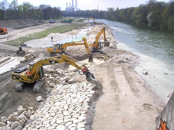 • Aufweitung des Mittelwasserbettes der Isar mit der Abfuhr von ca. 45.000 m³ Boden, der im Wesentlichen aus Schwemmsand, Münchner Kriegsschutt und Kies besteht.