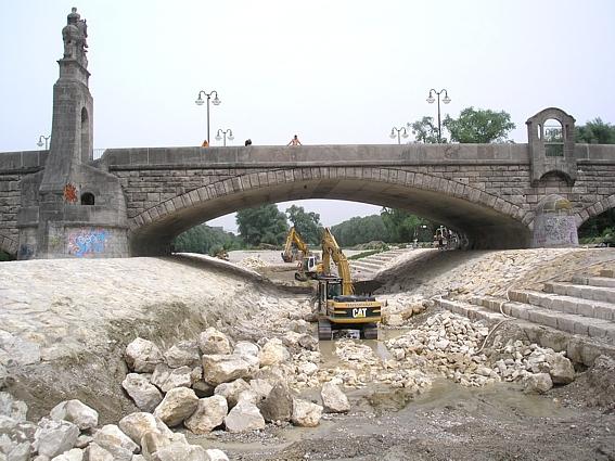 • Einbau einer Stufenanlage im Bereich der Wittelsbacher Brücke am rechten Ufer des Nebenarmes.