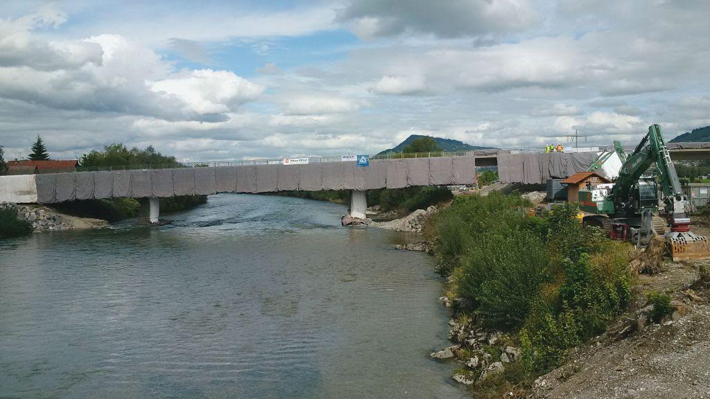 Spezialtiefbau: Erstellen von Spundwandkästen für Gründung, Unterwasserbeton zur Aussteifung der Spundwandkästen herstellen. Erdbau: Flussbau-, Aushub- und Straßenbauarbeiten, Abbruch mittels Sprengung, Betonbau, Stahlbau: Stahlüberbau in 5 Schüssen vor Ort moniert und in 2 Schubterminen verschoben.