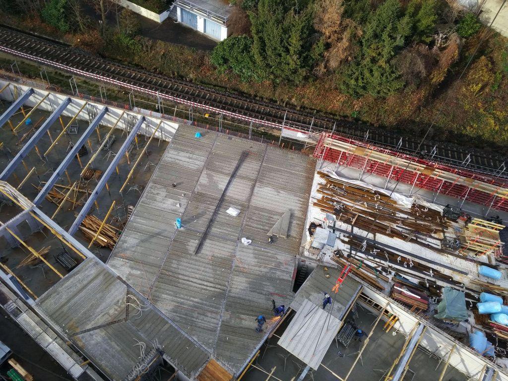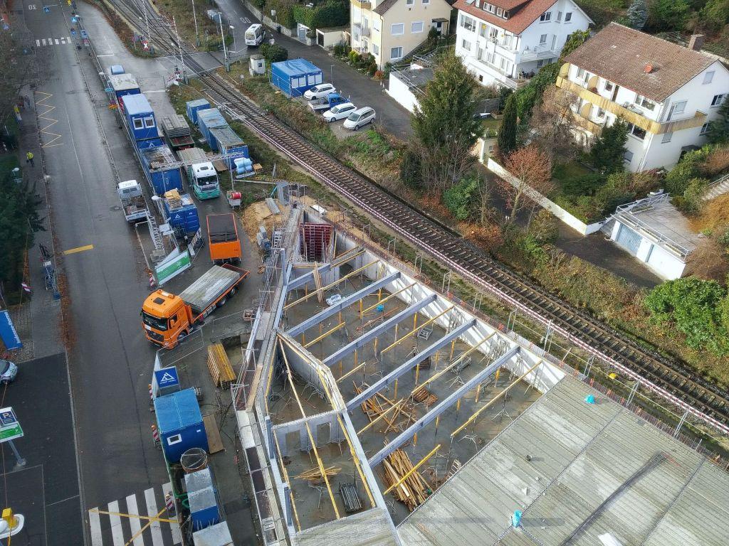 - Das Baufeld befindet sich zwischen einer Bahnlinie und der Hautstraße durch Überlingen. Dadurch extrem beengte Platzverhältnisse