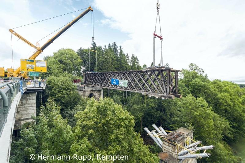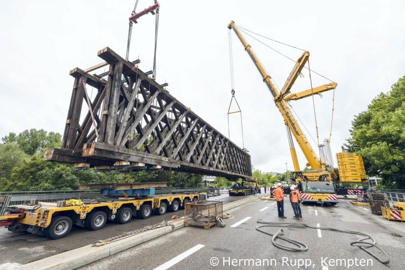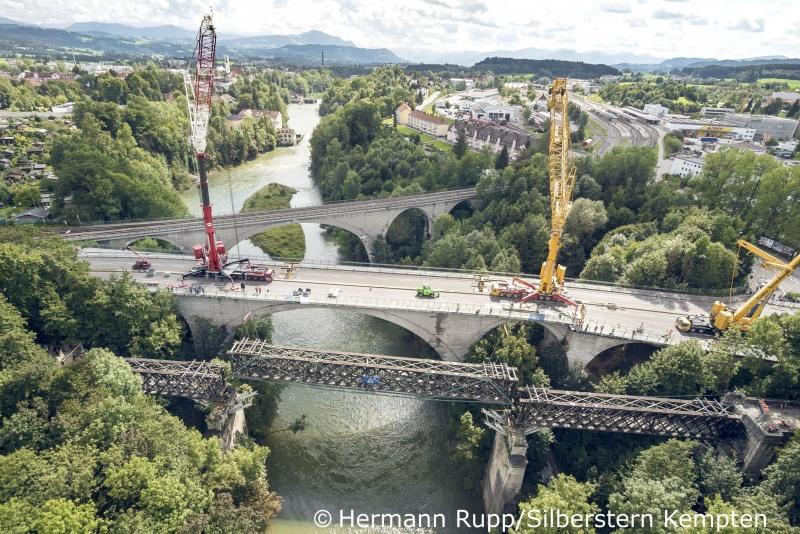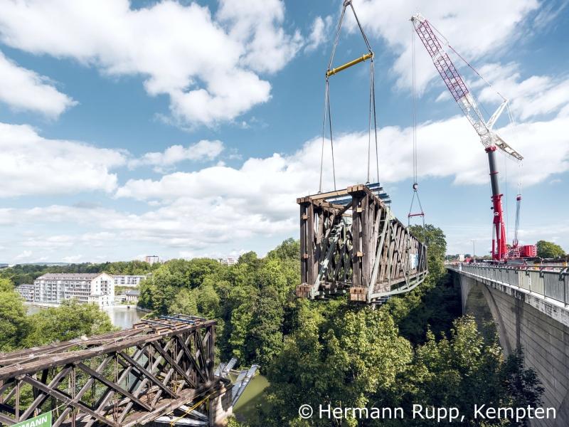 Baujahr: 1847-1852, System: Howescher Träger, Anzahl der Felder: 3, Lichte Weiten der Felder: 36/56/28m, Höhe über der Iller: ca.25m, Querschnitt: 3,88m/5,24m, Funktion der Brücke: 1852 bis 1904 Eisenbahnverkehr, 1904 bis 1972 Straßenverkehr, 1972 bis 1986 Fuß und Radweg, 1986 Sanierungsarbeiten, 1968 bis 2013 Fuß und Radweg, 2013 bis jetzt gesperrt.
